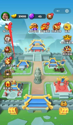 1、第一步我们要完成游戏的新手教程,之后在主城点击左上角的个人头像。