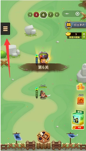 1、打开三国全明星微信小游戏,接着点击页面左上角的【三】图标。