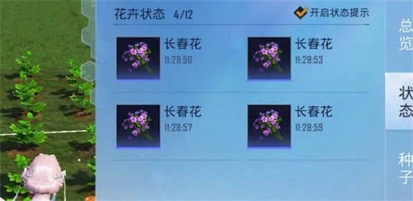 1:游戏里包含多种鲜花品类,长春花属于游戏内可免费获取的一种,我们只需点击种植按钮就能领取长春花。