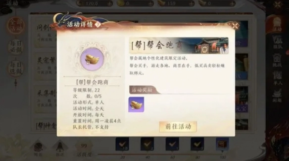 作为玩家,在游戏里肯定得琢磨着赚钱,毕竟赚钱能让战力提升得更快,而帮会跑商这个活动绝对不能错过。那么帮会跑商具体该怎么操作呢?下面就和小编一起了解一下吧。