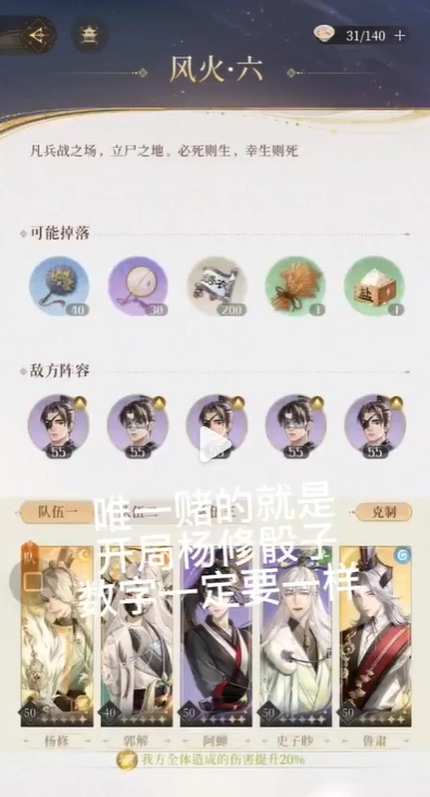 4、要是阿蝉或者杨修被击败了就立刻撤退,不然输出会不足。