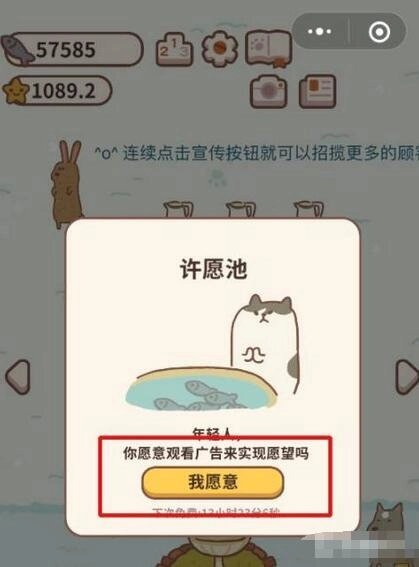 3、之后每天会有两次免费许愿的机会,也能通过观看广告来许愿,点击免费许愿即可。