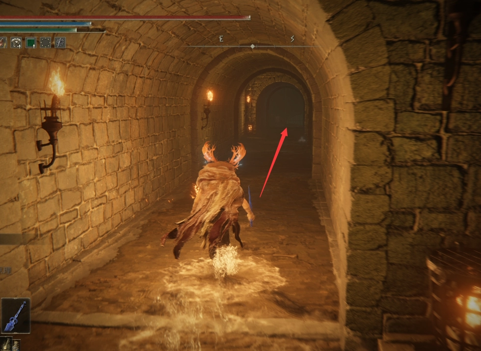 我们从井底右边的门进入。(跳下去只会产生硬直,不会掉血)