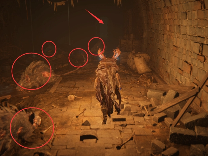 从前面的楼梯下去会遇到不少老鼠,我们可以选择绕开,或者把它们清理掉后通过前方的小门。