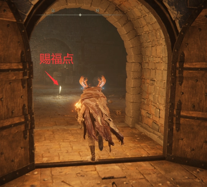 往前走一段路进入我们左手边的房间,赐福点就在房间里。