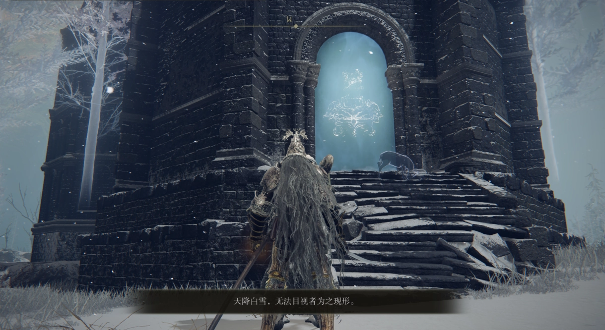 调查异端魔法塔正门的雕像,能得到“天降白雪,无法目视者为之现形”的提示。绕着魔法塔找了好一会儿,也没发现什么无形的东西,实在让人摸不着头脑。