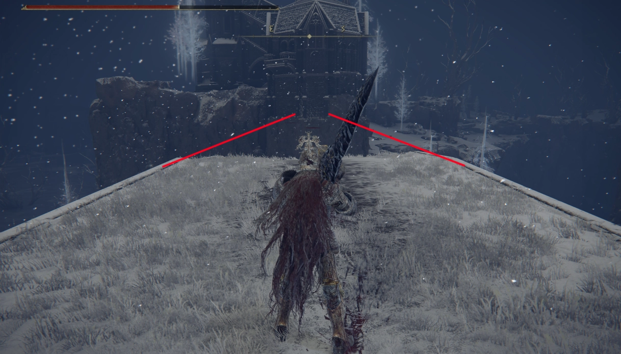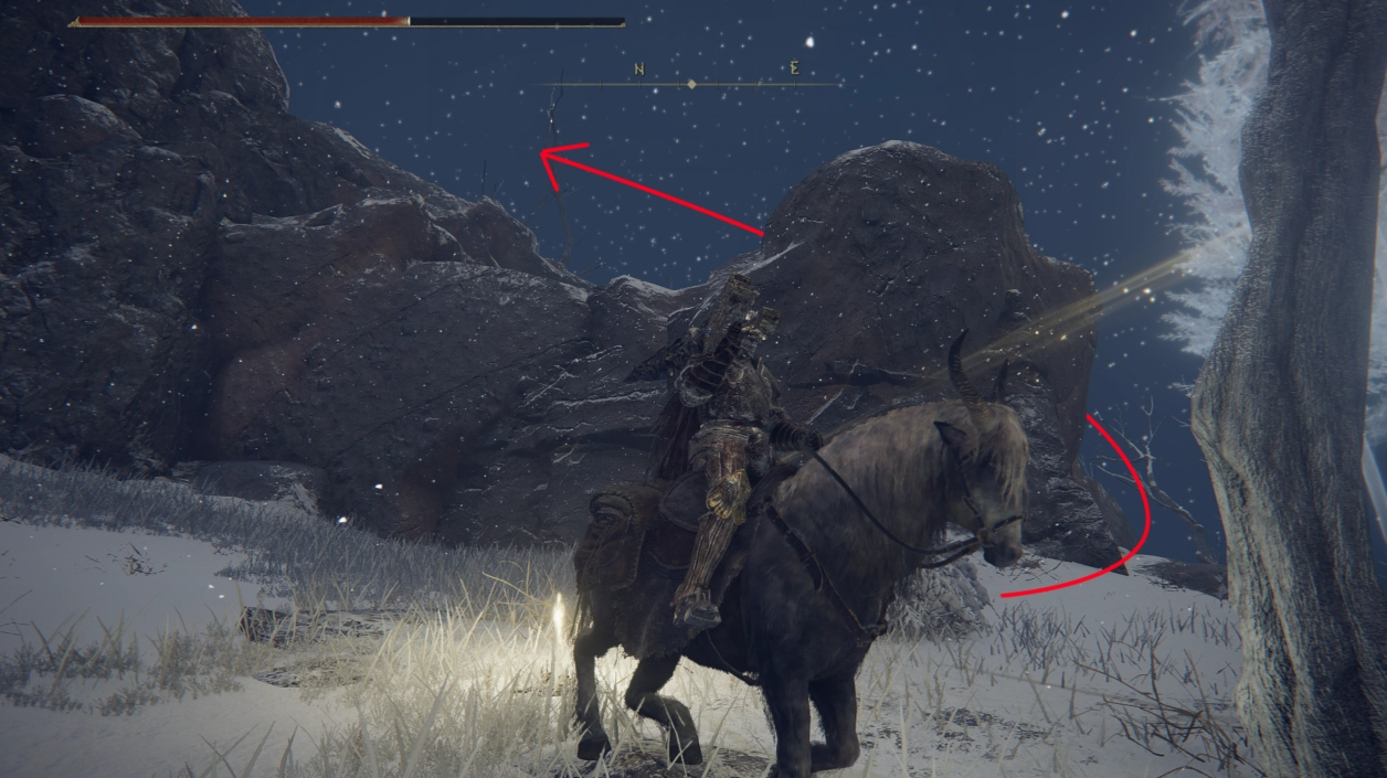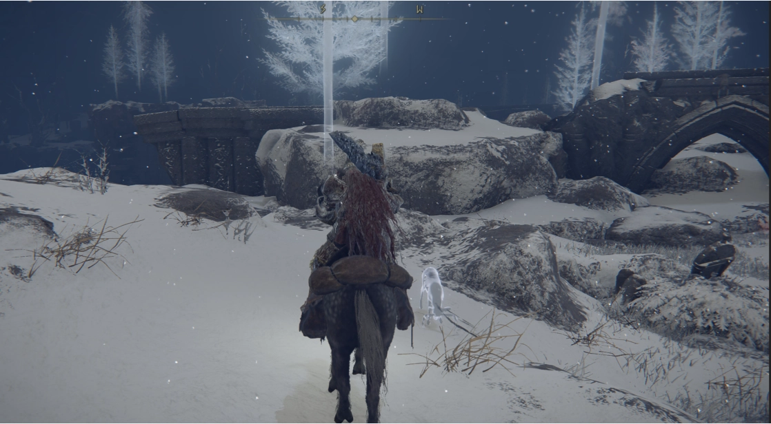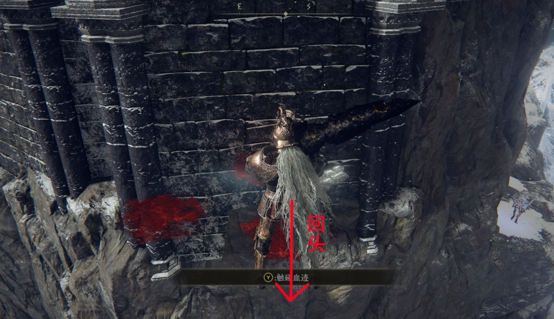 现在我们得先传送回附近结冰湖的篝火处,然后沿着篝火后方的山崖一直向上行进。