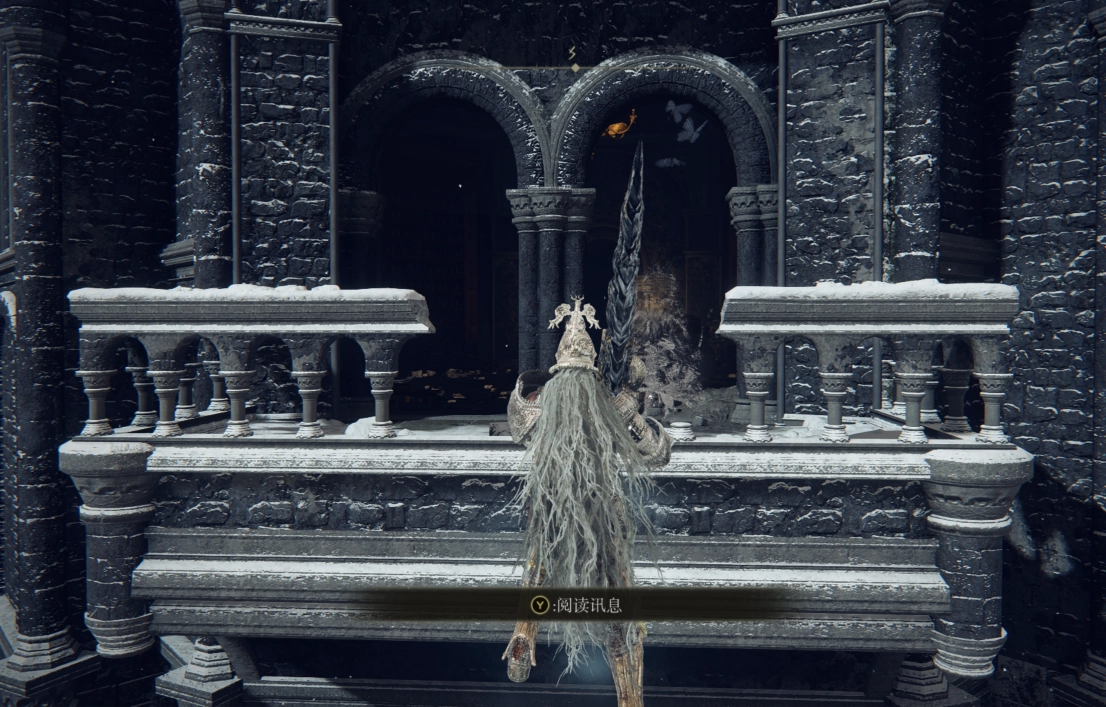 可以把视角调整到看向脚下的方向来确认路径,顺着雾气之桥往上走,就能通过一处破损的阳台进入魔法塔。