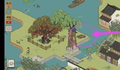 1、第一把钥匙位于祈福树小岛,其旁紧邻望火楼。