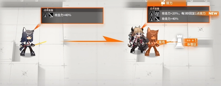 保全派驻的核心特点是干员能够进行接力操作:把干员B部署到干员A所在的位置时,干员A会触发离场效果并进入休整区,与此同时,干员B会获得接力效果,从而继承干员A的战术装备。