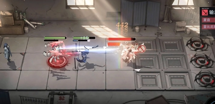 接下来会出现一只精英怪,它有一个核心,使用夏音的技能来破坏核心,再将雷比尼斯移动到夏音面前,让他们一起进行输出。
