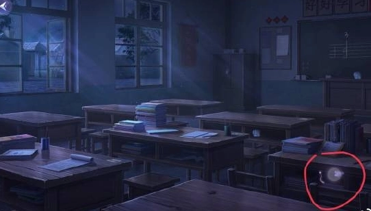 2、最右列倒数第二张桌子左边抽屉里的纸团-节点:翻课桌