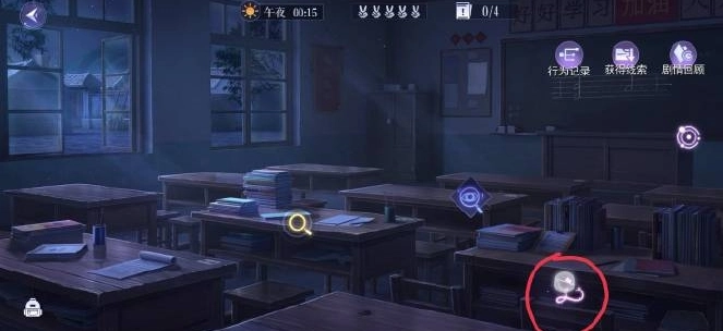 5、画面中间“观察”图标左边的纸团-节点:翻课桌+纸条+纸条