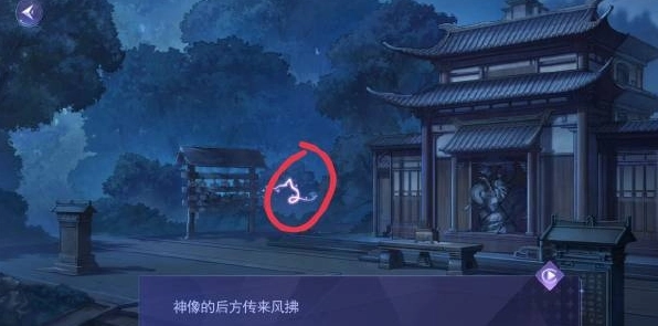 7、点击供桌上的黄色放大镜,然后弹奏乐器,按照从下往上的顺序,依次点击112342这几个节点,完成未知乐章的弹奏。