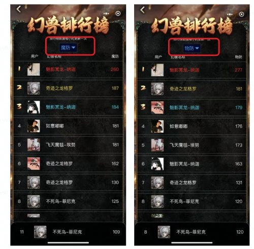 玩家可以参与排行榜挑战,该排行榜由生命值、攻击力、魔防、物防四个榜单构成,玩家拥有的幻兽中,单挑属性最高的那只幻兽能够参与排行榜挑战。活动结束后,每个排行榜排名前5的用户,都可以获得专属、限量且定制版的幻兽实体卡。另外,提升幻兽的属性和星级,也有机会把虚拟幻兽兑换成专属的实体金卡、银卡,这些都是限量兑换的,绝对不能错过!