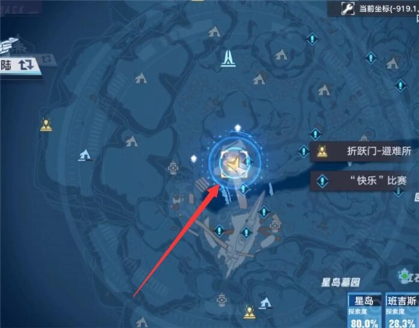 1、首先,玩家需要传送到下图所示的折跃门位置,也就是初始区域的星岛避难所。