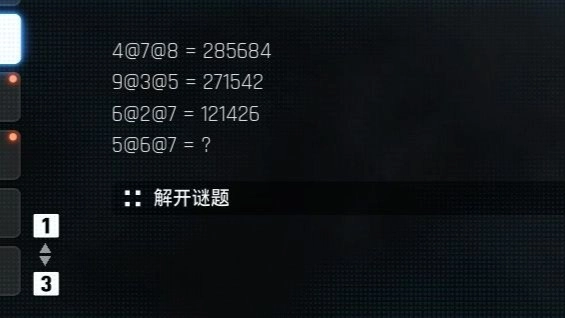 剑星偶尔会推出一些谜题任务,其中简单谜题是一道数学题,玩家前往城区北部的控制台即可触发该任务。任务要求中的算式里,数学符号被@替代,需要玩家自己推断@所代表的具体含义。