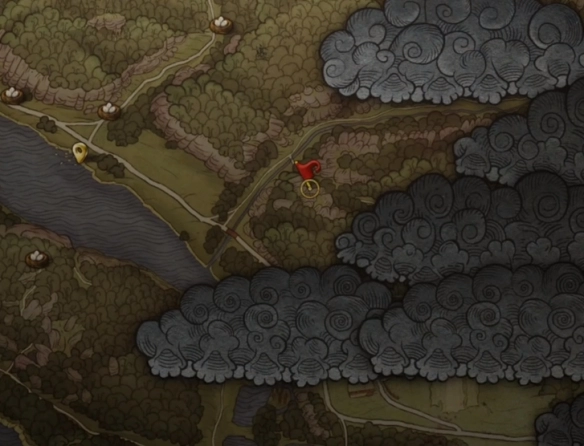 前往特洛斯基城堡上方的森林区域,寻找一处隐蔽的山洞。洞内有一个十字架,将旁边的石头移开后,用铲子掘开泥土,就能发现布伦瑞克的护手、匕首等物件。