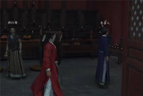 先去和【燃灯僧】对话,之后出门右拐,在树下找到【李善人】并与之交谈。