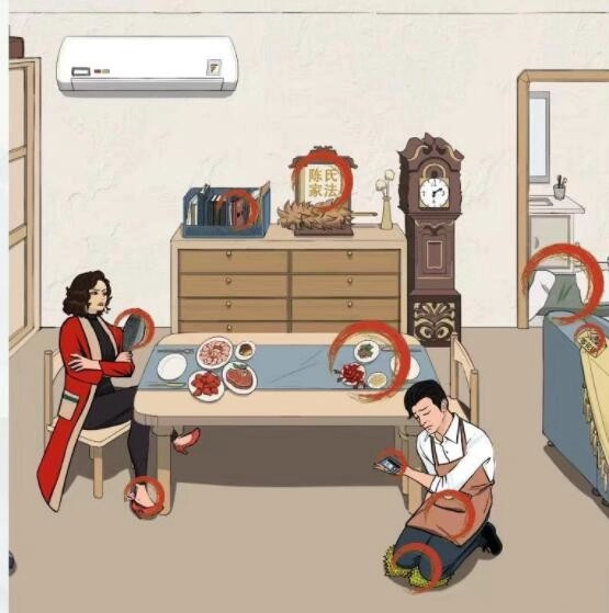 文字王者里“找出12个家庭弟位”这关的通关攻略来啦!文字王者是一款主打文字解谜与寻物的小游戏,在这一关中,画面里的男女正在争吵,玩家需要找出体现“家庭弟位”的元素,具体有:手持冻鱼、跪榴莲、系围裙、上交工资、剥好的虾、陈氏家法、睡厕所、三件T恤、狗盖西服、房产证、藏私房钱、零花钱。还没通过这关的小伙伴可以参考这份攻略哦。