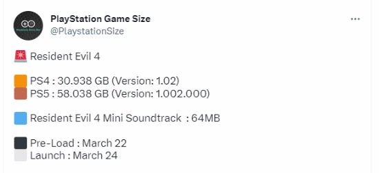 据专注于PS游戏容量信息的推主PlayStation Game Size透露了《生化危机4:重制版》PS版本的大小,让我们一同来了解相关情况。