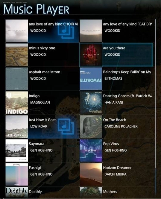 目前游戏里有34首音乐可获取全部音乐列表,