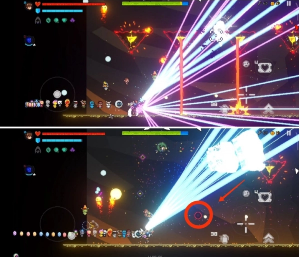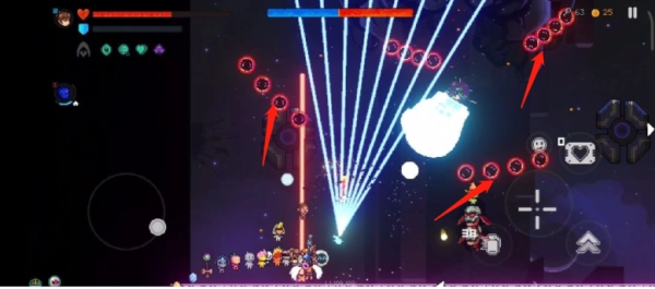 3、普罗米修斯会发射八束激光进行攻击,发射前会出现红线预警,红线之间的间隔较大,比较容易躲避。