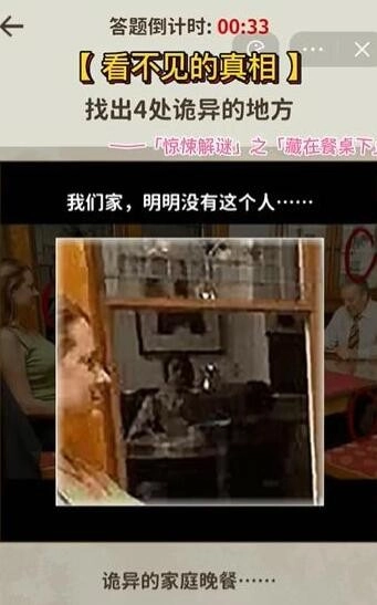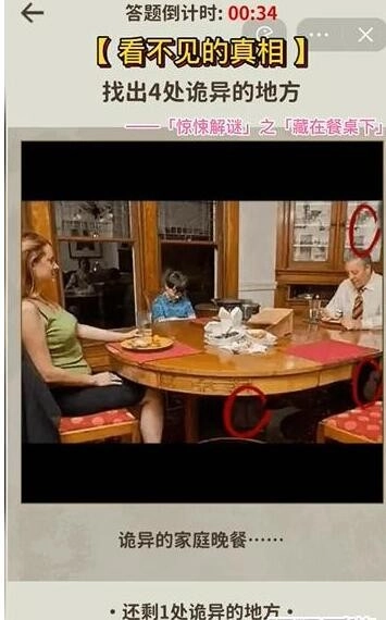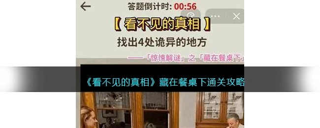 《看不见的真相》藏在餐桌下的通关攻略来啦!这是一款超考验观察力的益智游戏,大家可以在抖音搜索【看不见的真相】直接打开小游戏玩。其中“藏在餐桌下”这关的照片展示了一场家庭聚餐,需要玩家找出四处诡异之处。下面为大家带来这关的详细攻略,还没通关的朋友快来看一看吧!