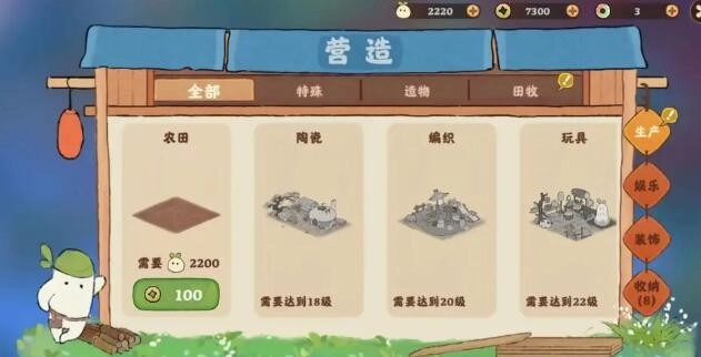 满足等级条件后,在“营造-娱乐”中购买娱乐建筑并放置于家园中。