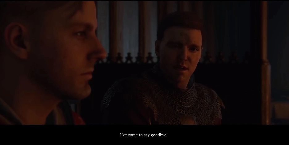 这里要注意,不要选任何带有说服性质的选项,而是选择最下方的选项来结束对话。接下来,你得蹲下身,把布莱克打晕,然后背着他从西吉斯蒙德的军营一路走到维多利亚所在的地方。