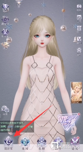 1、首先我们在游戏主页点击左下角的【设计室】,进入角色设计菜单页面。