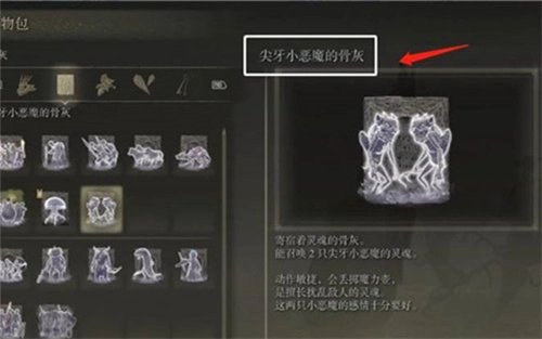 3、接着打开背包,使用尖牙小恶魔的骨灰