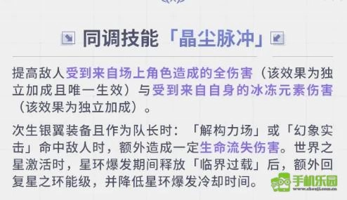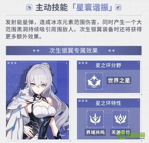 当次生银翼配备「苍雷星梭EX19」后,星之环分野中的世界之星将被激活,同时解锁界域共鸣与天渊易位两项特性,对应的星之环技能也会随之开启。此外,场上敌人会受到全队物理及各类元素伤害提升的效果,该加成对整个队伍均能起到增益作用。