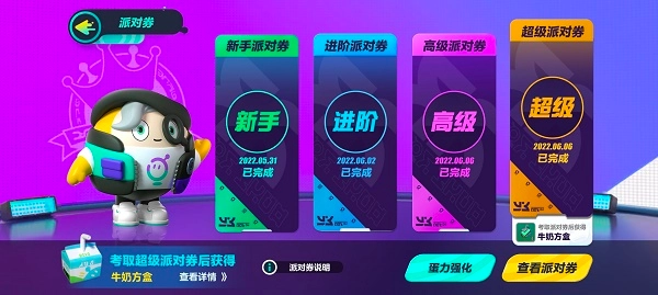 1、牛奶方盒的获取途径也比较显眼,就在游戏的派对券系统里(下图左上角)。