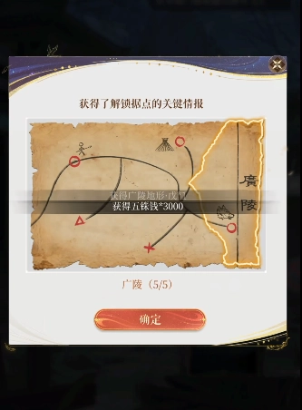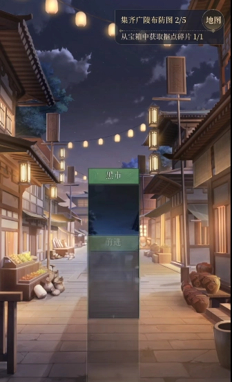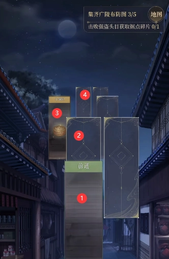 2、进入探索界面后,玩家需要【集齐5张广陵布防图(当前进度0/5)】,之后点击卡牌即可。