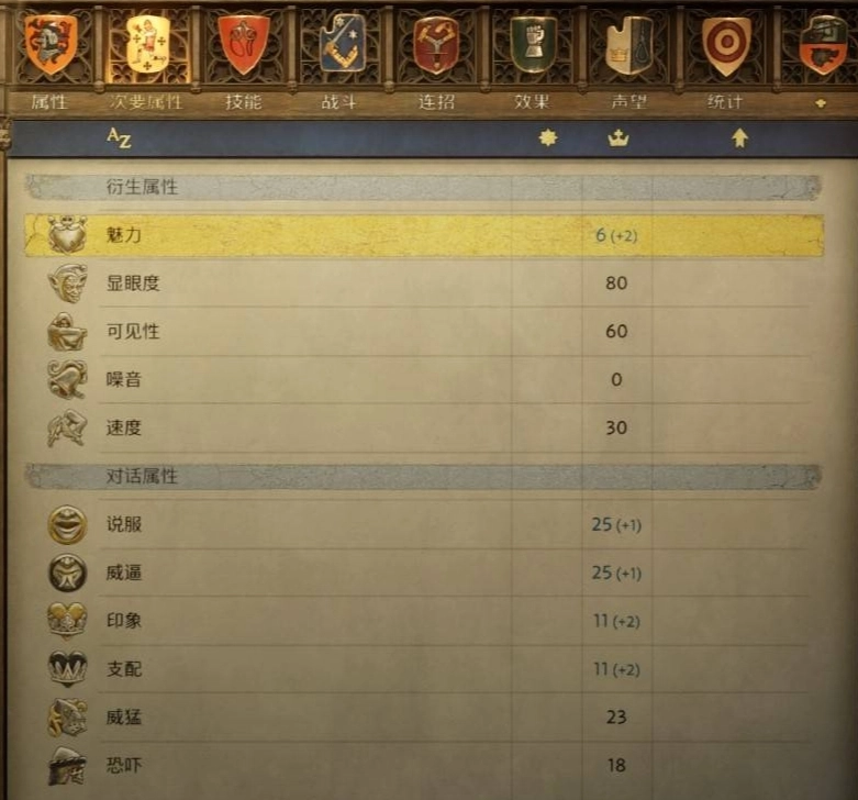 印象:由口才和魅力属性决定。穿着华丽的衣服和拥有较高声誉时更容易成功。