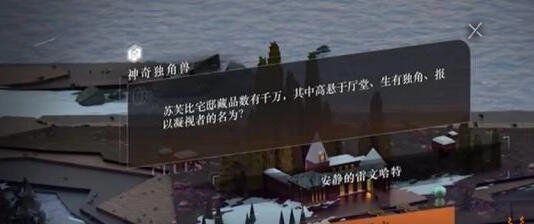 1、苏芙比宅邸的藏品数量多达千万,在这些藏品里,有一件悬挂在厅堂高处、长着独角且会投来凝视目光的,它的名字是?