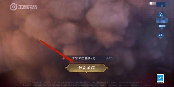 1、启动王者荣耀应用,点击“开始游戏”按钮。