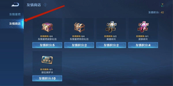 友情商店位于游戏关系板块下的友情重燃功能中。