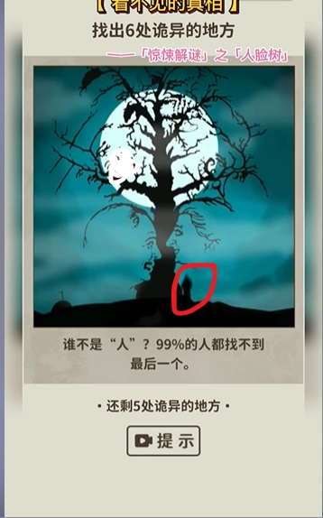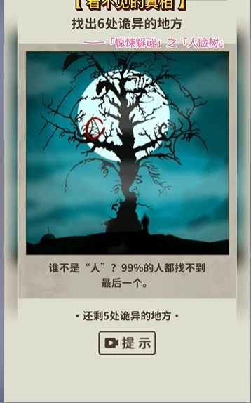 《看不见的真相》人脸树关卡攻略,不少玩家都对这款新推出的悬疑解谜小游戏情有独钟。游戏包含多个关卡,每个关卡都对应着独特的画面场景,玩家需要找出所有隐藏的诡异之处。下面为大家带来该关卡的详细攻略,一起来探索解谜吧!