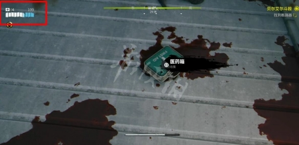 界面左上角会显示当前玩家的生命值,若要恢复生命值,可按下十字键的下键来使用医药箱。