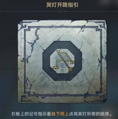 如图所示,把冥灯从下往上依次点亮就行,要是点错了重新来过就可以(因为解谜时忘了截图,所以只有这一张图片)