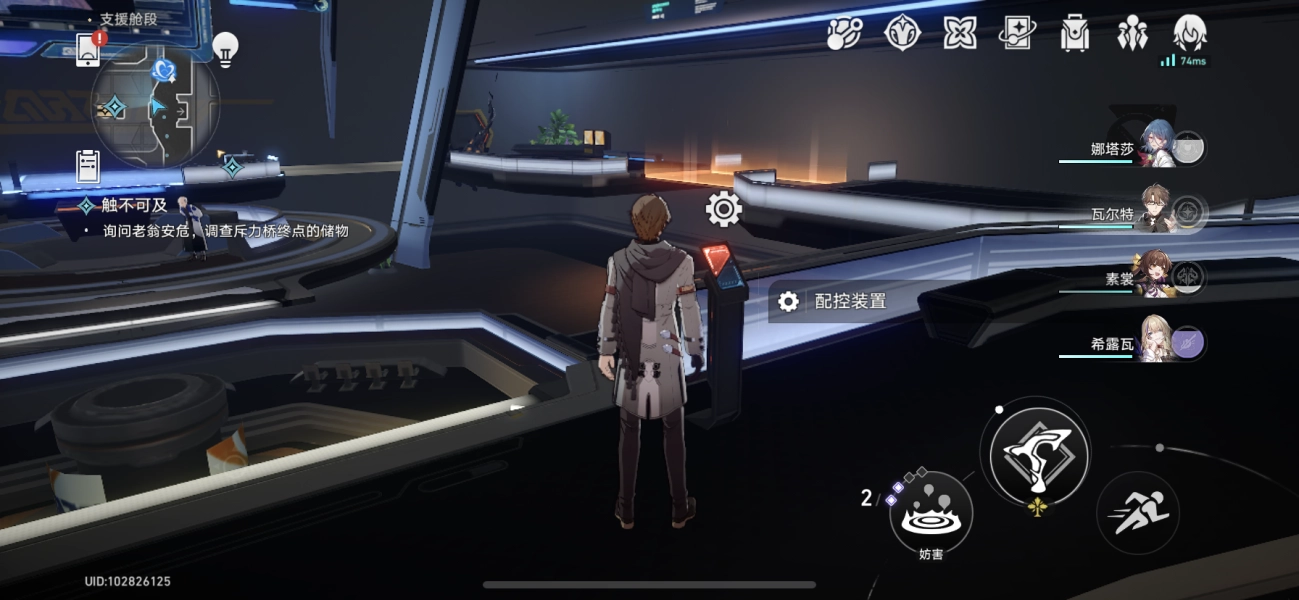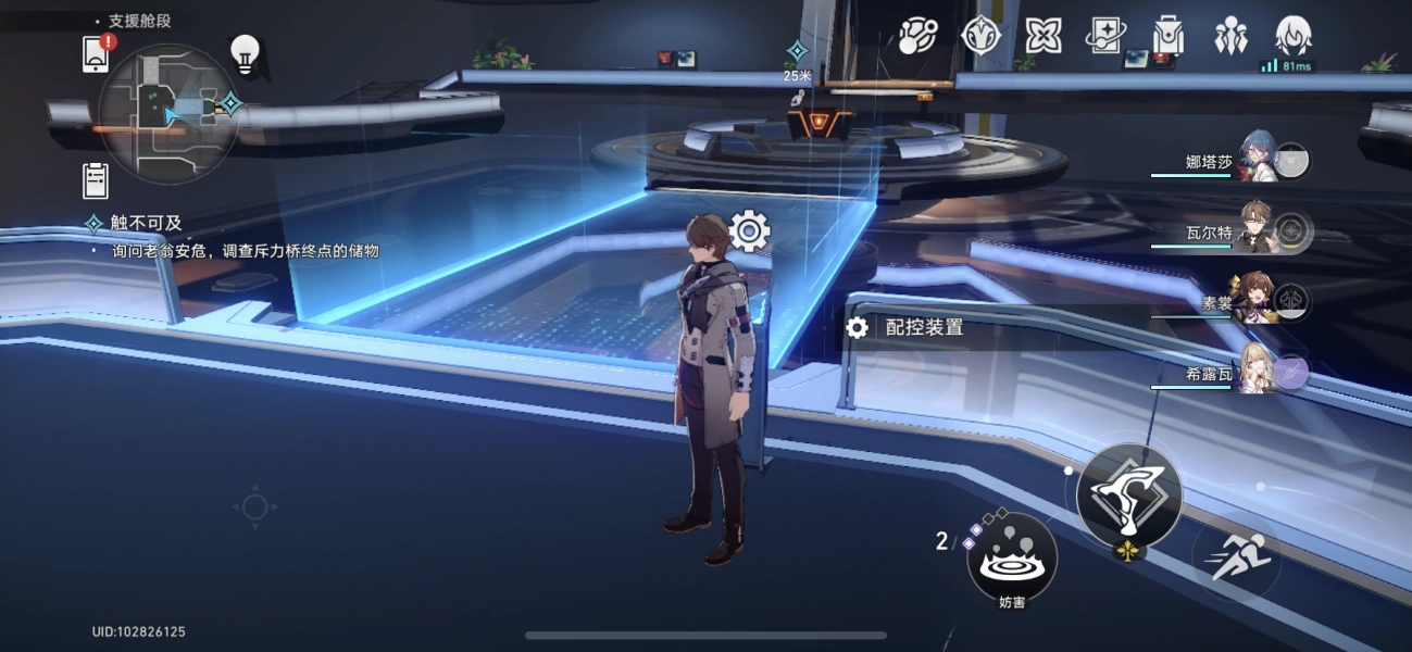 按照任务提示进入指定舱室后开始解谜,进门第一步先操作“配控装置”,让左手边生成蓝色光桥。