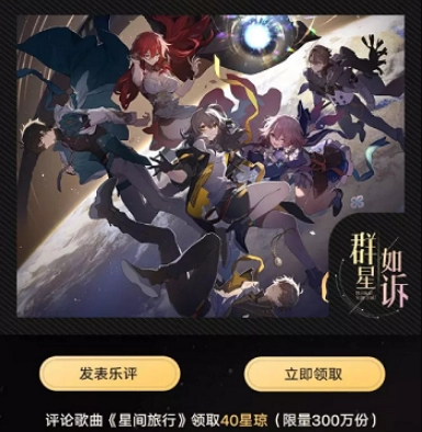 ②参与乐评活动领取星琼*40,每位用户仅限领取一次;