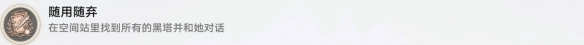 和5个黑塔人偶分别对话一次后,就能解锁成就《随用随弃》