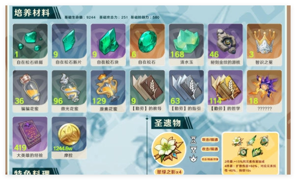 特效:10秒内,依据持有者的元素精通,攻击力提升24%/30%/36%/42%/48%;同时,基于这部分攻击力提升的30%,为队友持续增加攻击力,效果持续12秒,处于后台时也能触发。