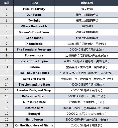 解锁要求:需花费40000 Gil购买(购买地点为达利米尔旅舍的劳苦广场)