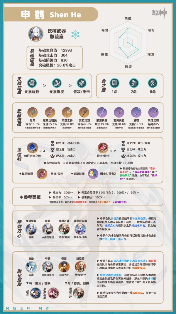 ③.低命申鹤优先提升辅助能力(即选择攻击、充能类武器),4命以上申鹤可以考虑堆叠双暴,提高申鹤的技能爆发伤害。