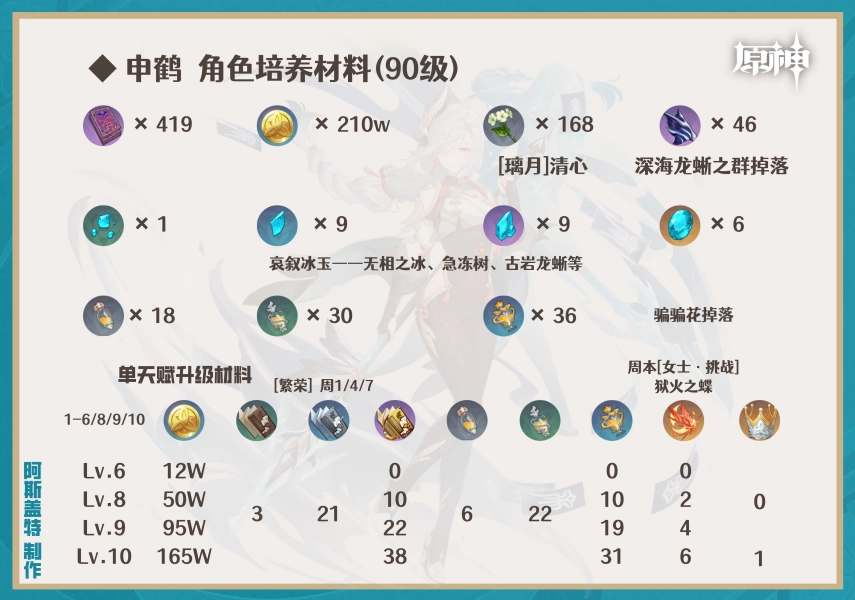 ③.第4命座可以通过队内累积消耗的冰翎次数来提高再次施放的元素战技伤害,该命座提高了申鹤自身的输出能力,但总体性价比较低,并不推荐专门抽取。