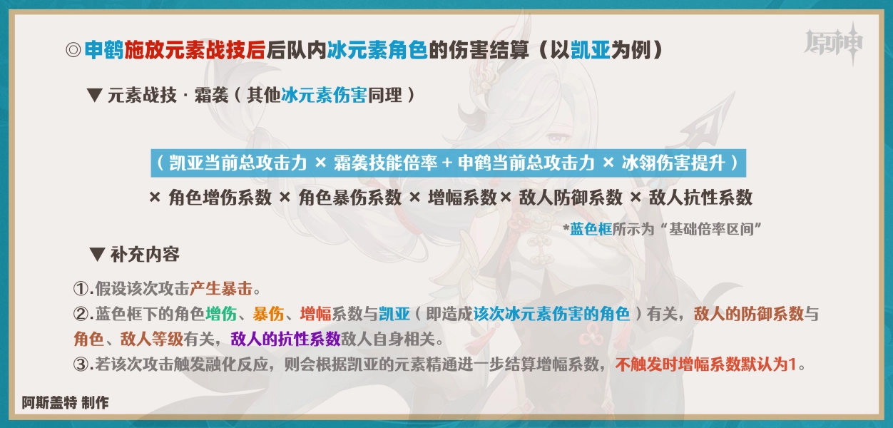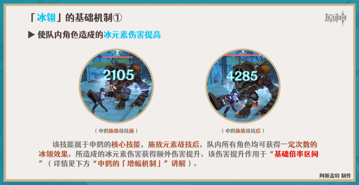 ①.通俗地讲,就是“申鹤的攻击×冰翎倍率”这一数值去“吃”其他角色的伤害乘区。